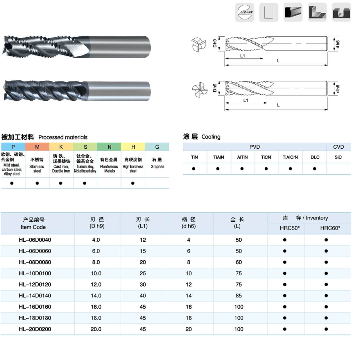 硬質合金高螺旋銑刀