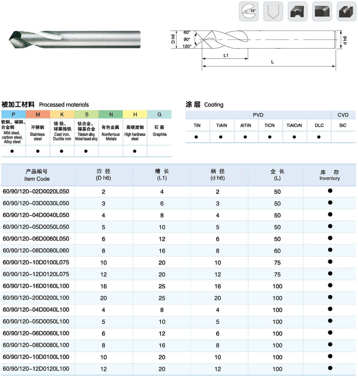 硬質(zhì)合金定心鉆(60°/90°/120°)