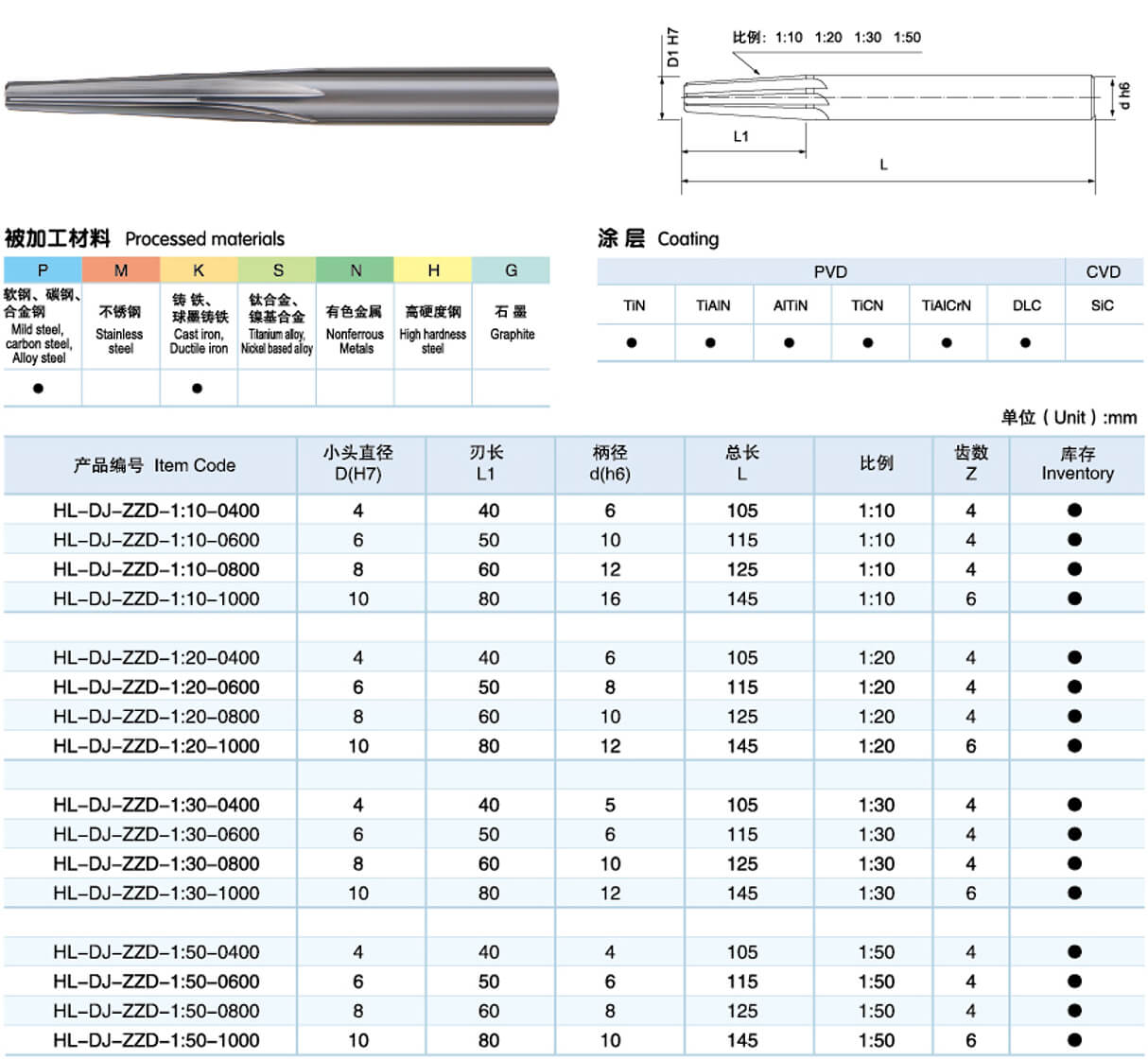硬質(zhì)合金錐度鉸刀(螺旋槽)
