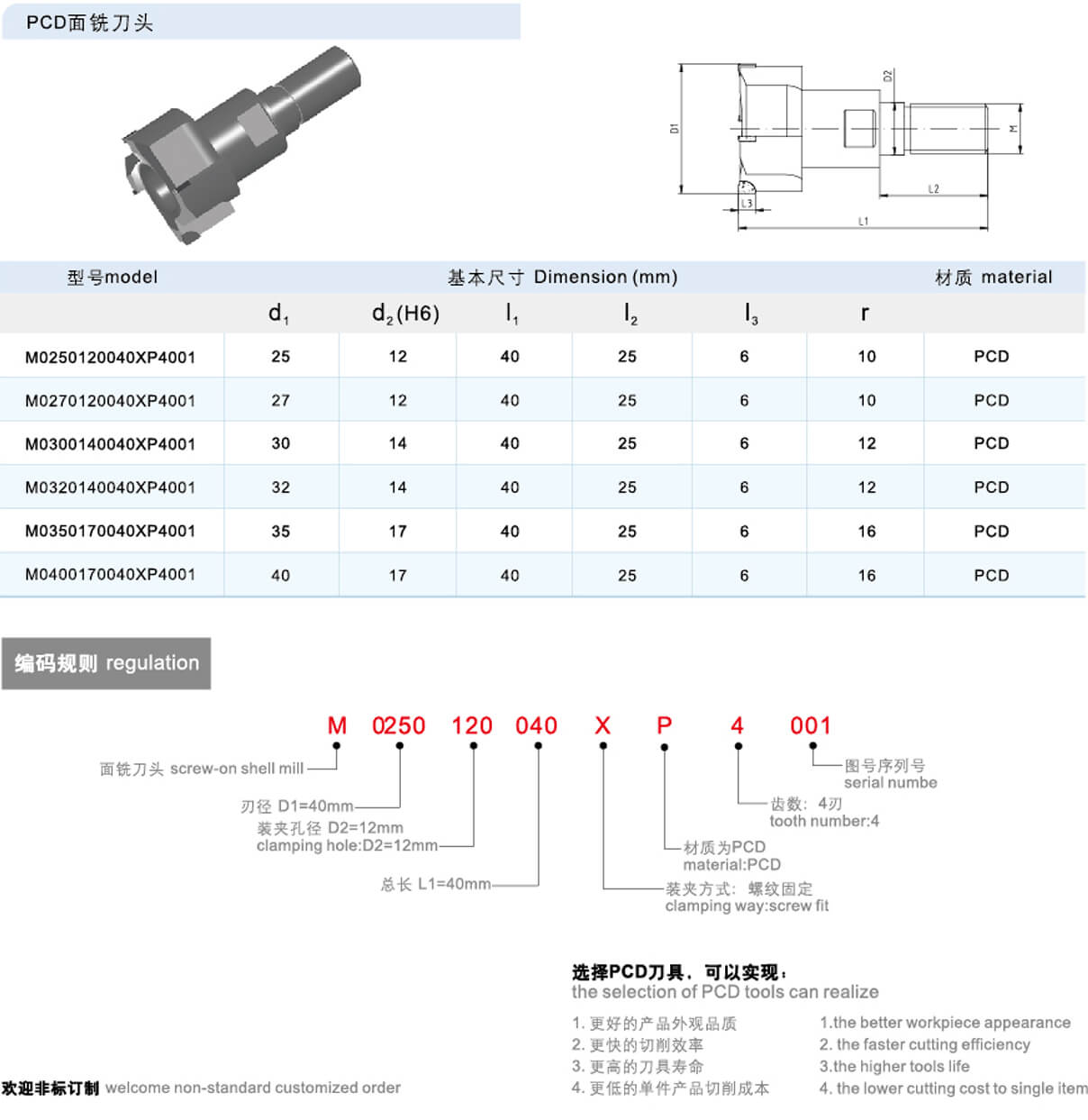 超硬面銑刀一PCD面銑刀頭