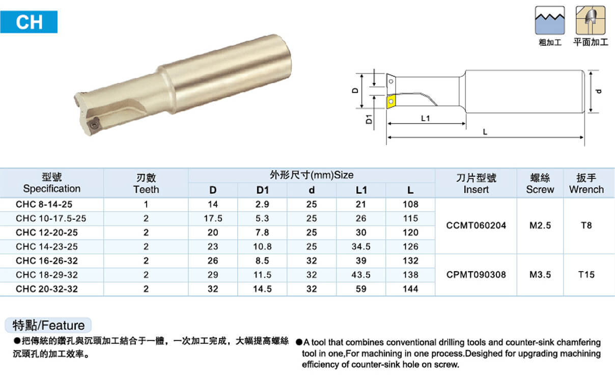 CH螺絲沉頭孔銑刀